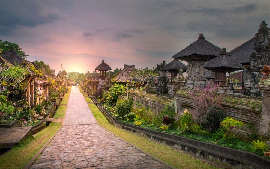 Dhe kur vijnë festat si Galungan dhe Kuningan, fshati transformohet. Dekorimet me bambu, ofertat me ngjyra, zhurma e gëzimit krijojnë një kontrast me rendin arkitekturor – një betejë e bukur midis strukturës dhe vitalitetit, midis së përhershmes dhe së përkohshmes.